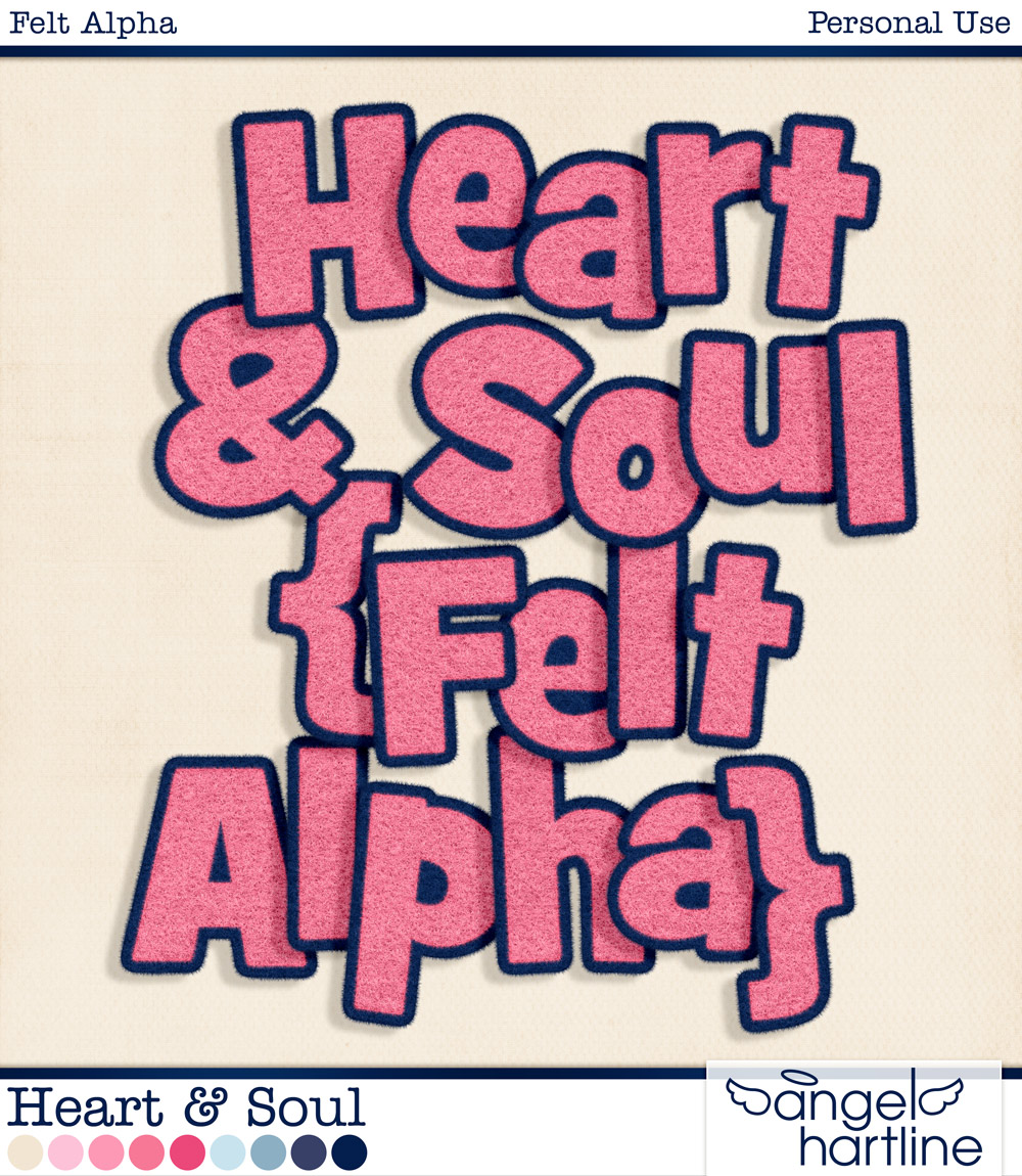 - Heart & Soul: Felt Alpha contains a complete fuzzy felt alpha set including uppercase, lowercase, numbers, punctuation & international characters. Format: PNG.
