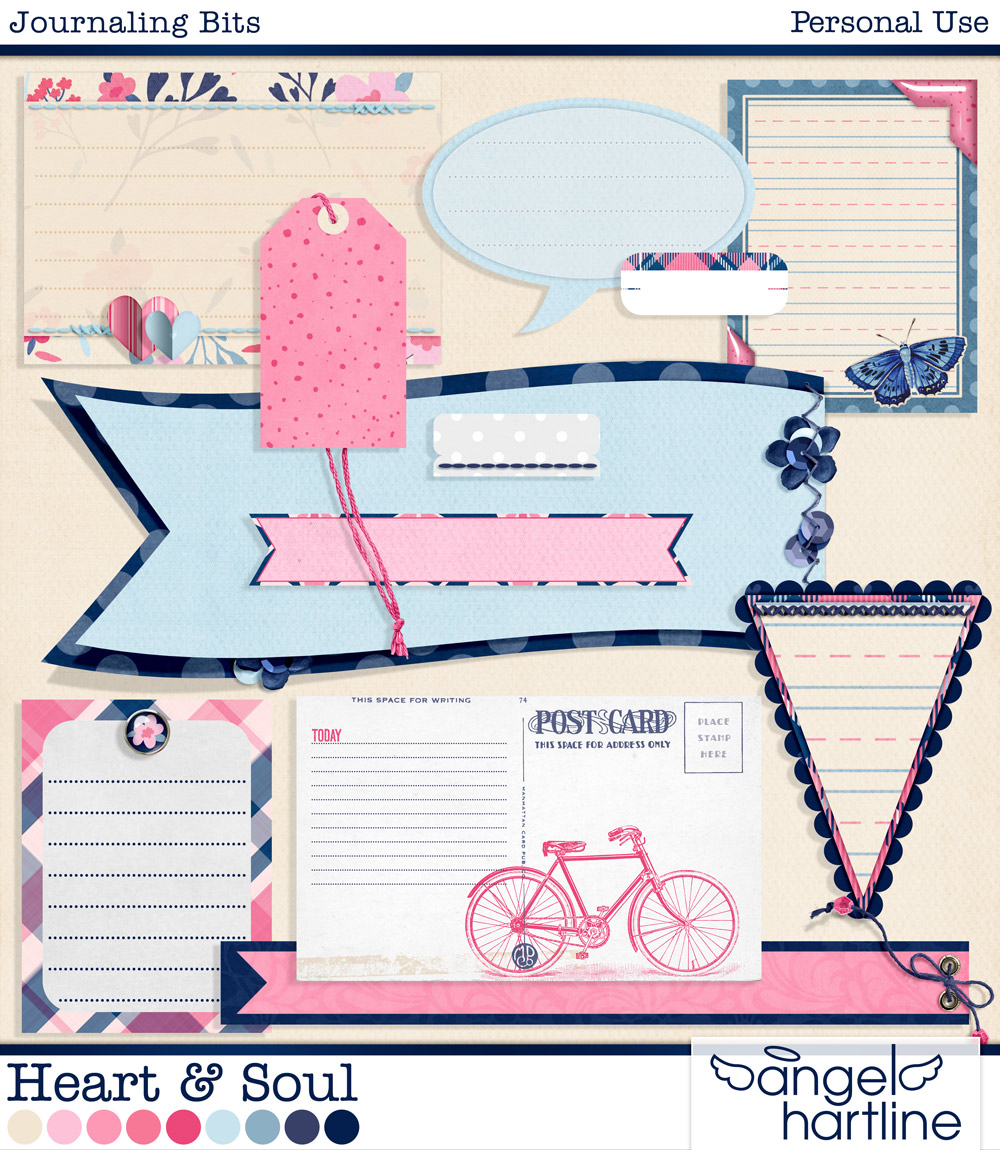 - Heart & Soul: Journaling Bits contains 12 journaling spots. Format: JPG & PNG.