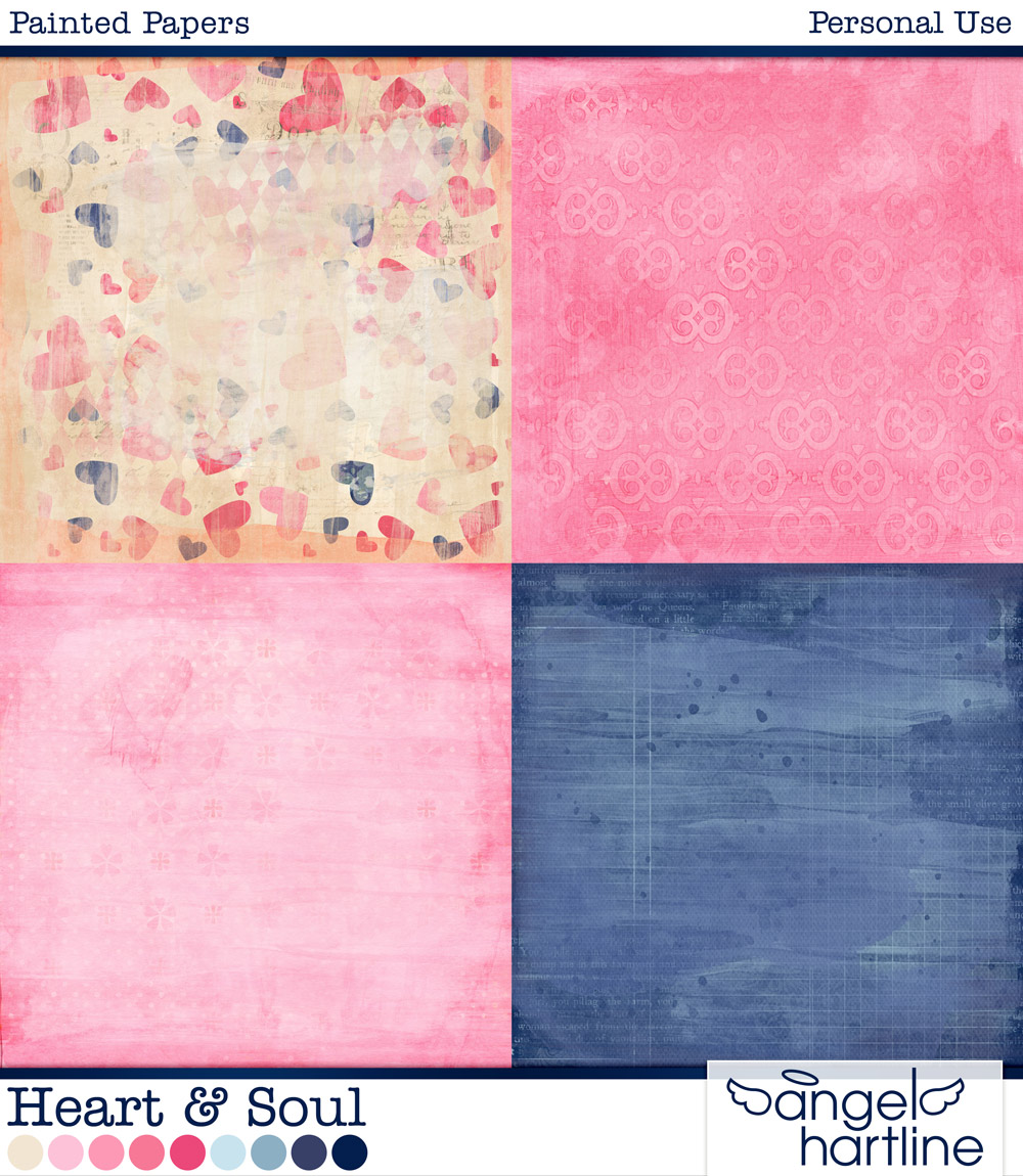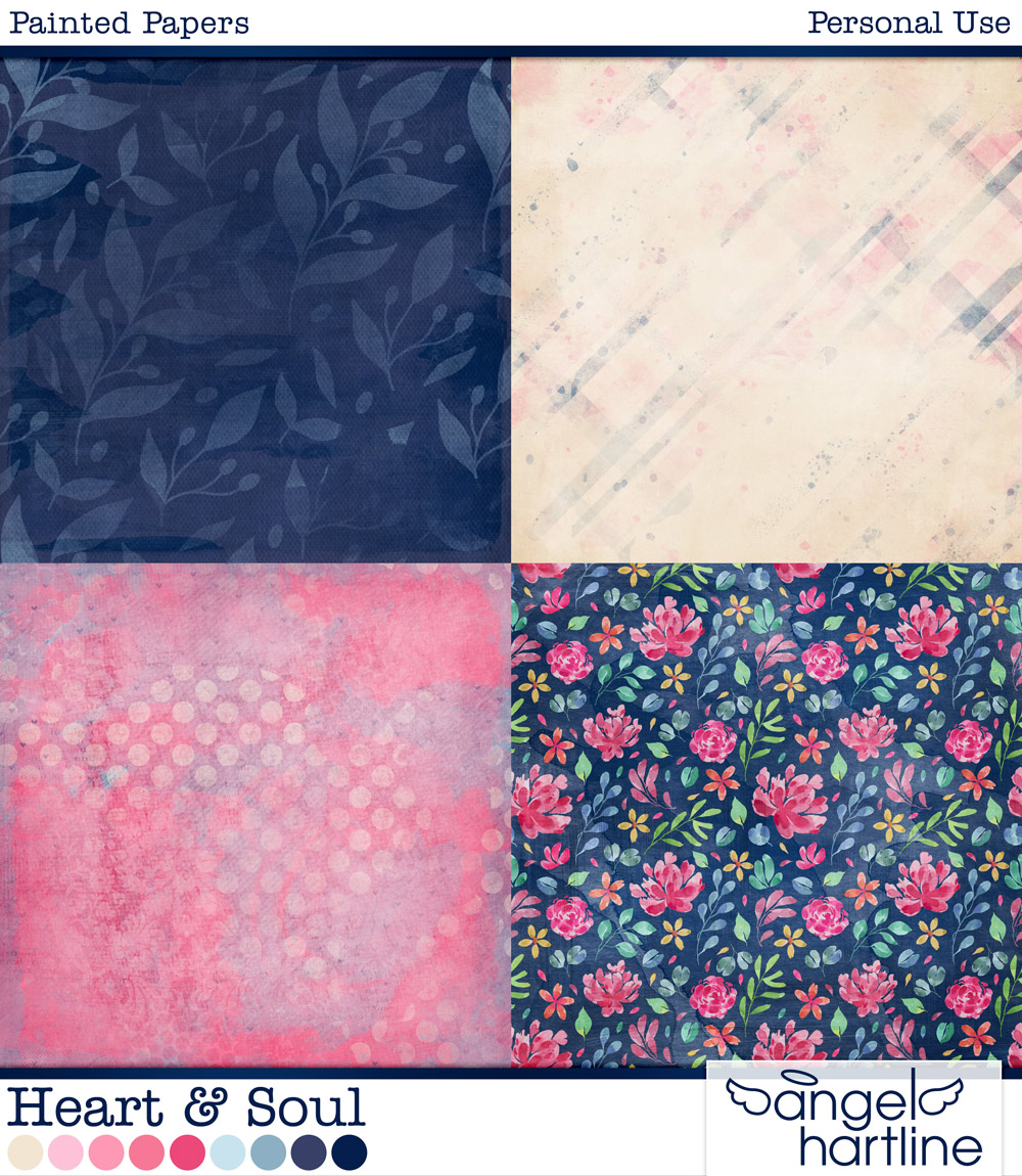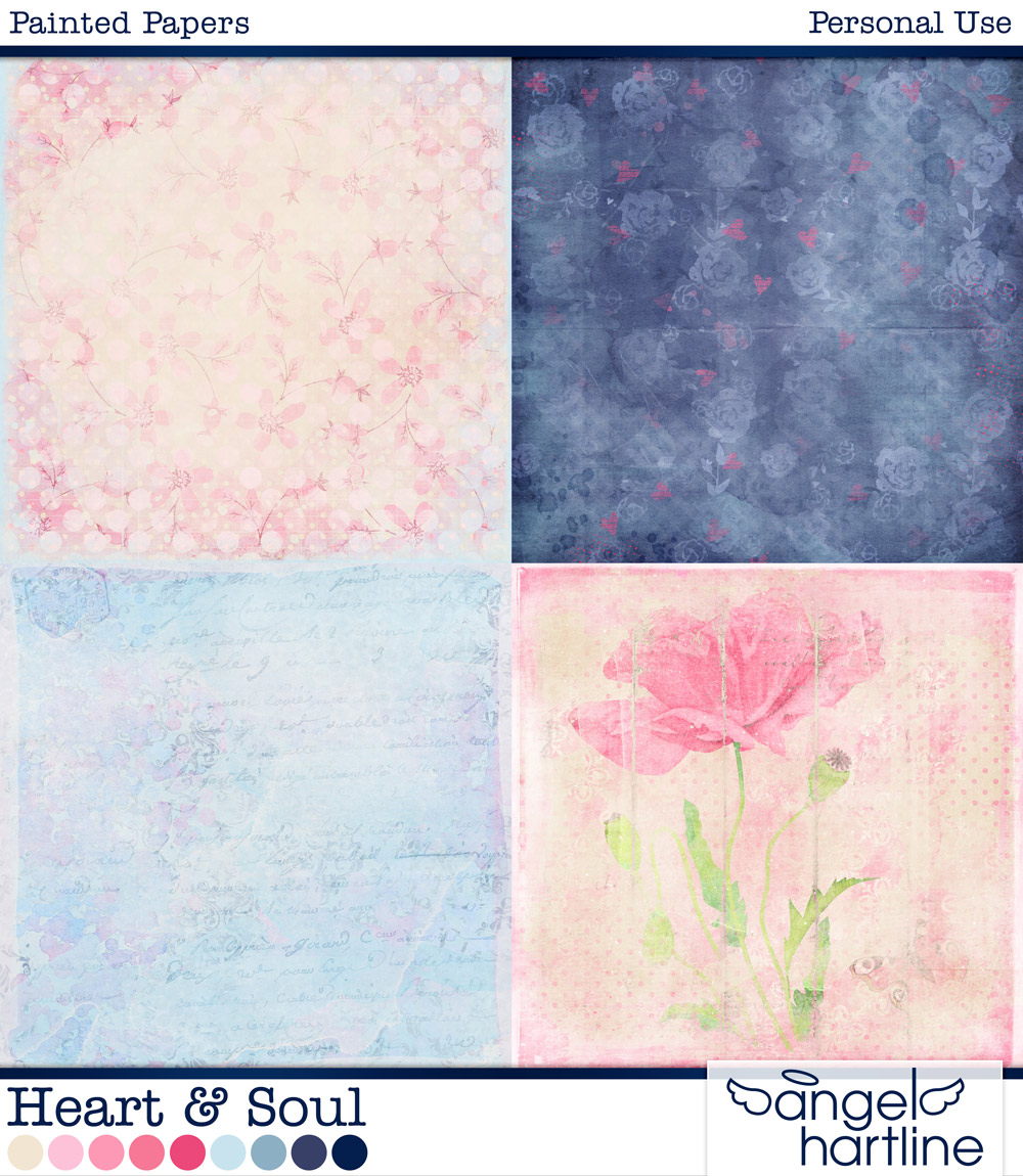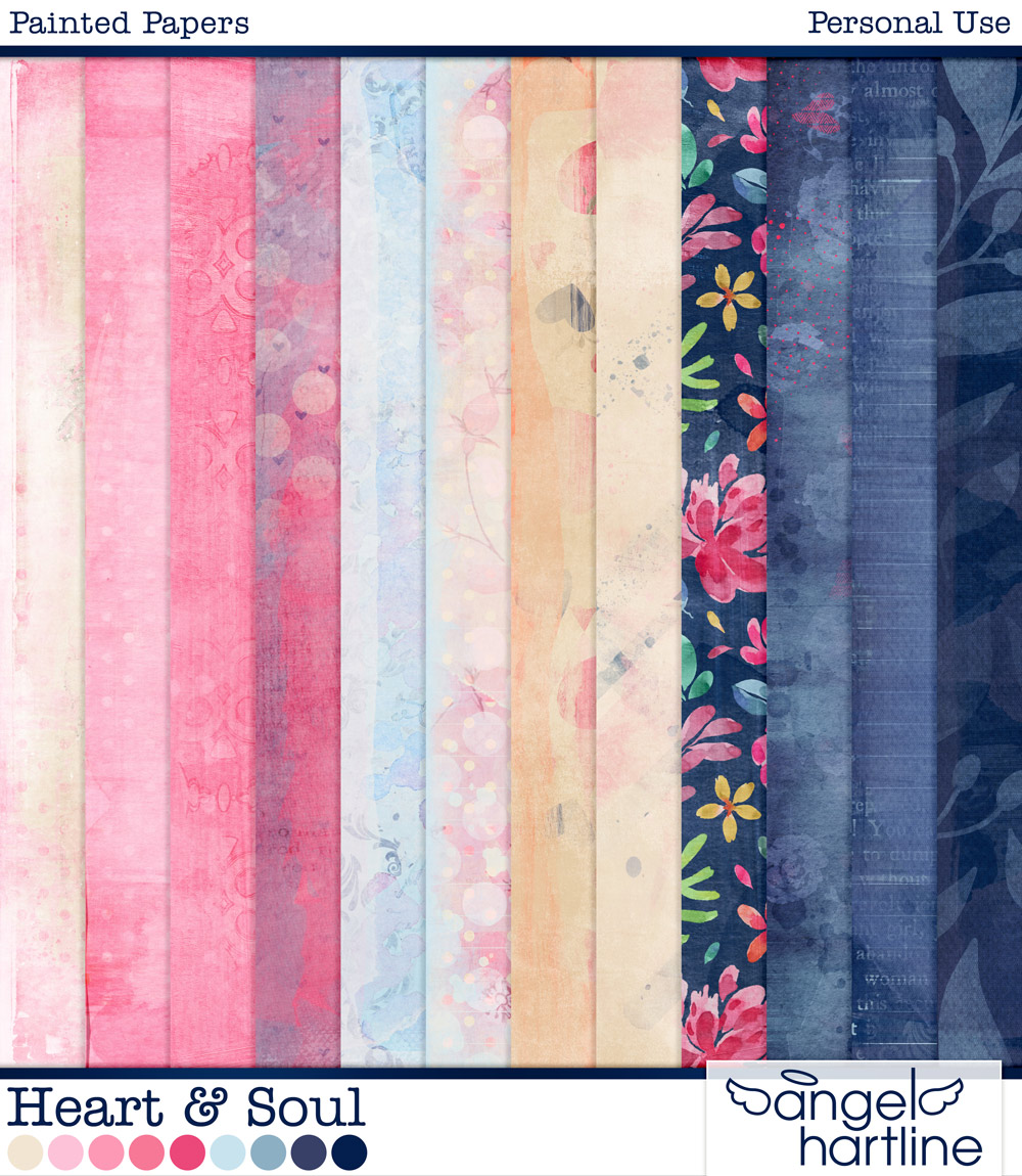 - Heart & Soul: Painted Papers contains 12 12x12in papers. Format: JPG.