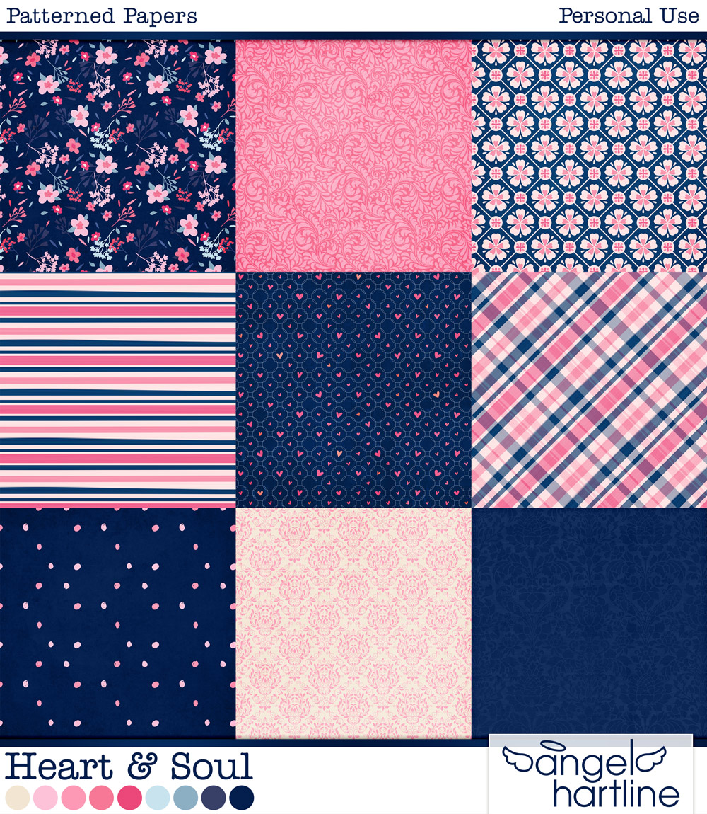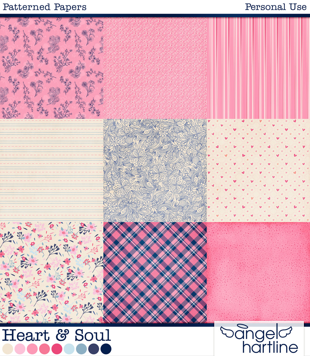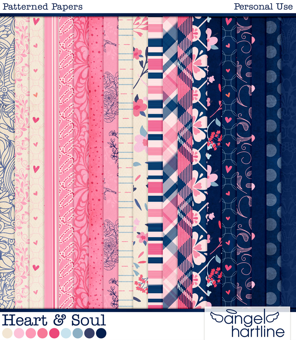 - Heart & Soul: Patterned Papers contains 20 patterned 12x12in digital scrapbook papers. Format: JPG.