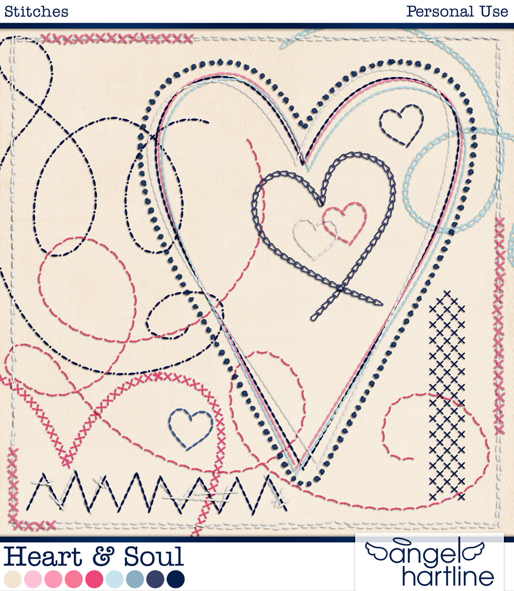 - Heart & Soul: Stitches contains 18 ready to use (shadowed) stitches. Format: PNG.