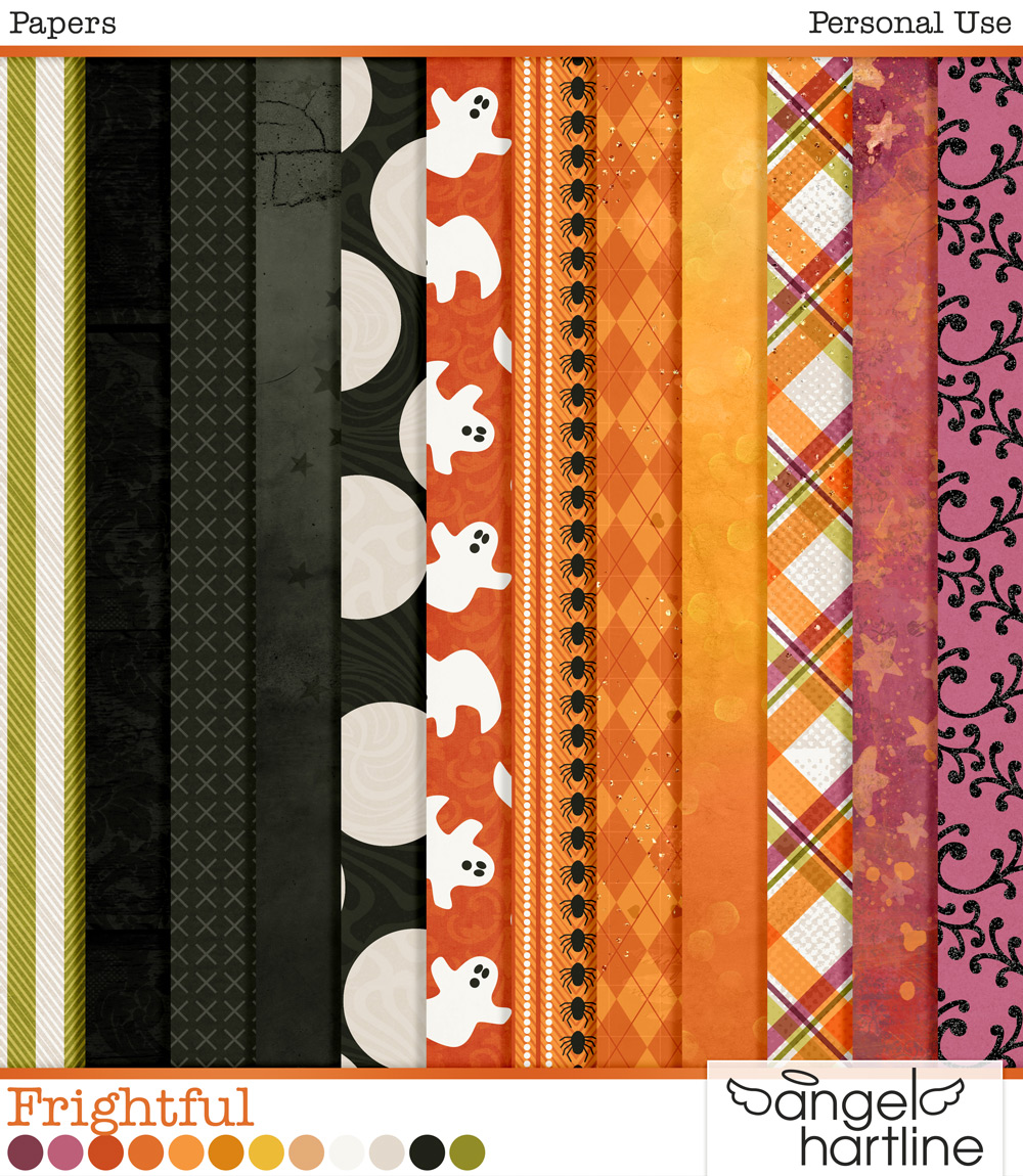 - Frightful [Papers] contains 12 patterned 12×12” papers (JPG).