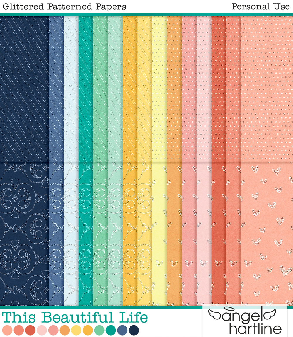 - 60 glittered patterned papers (4 patterns in 15 colors each, 12x12in, JPG)